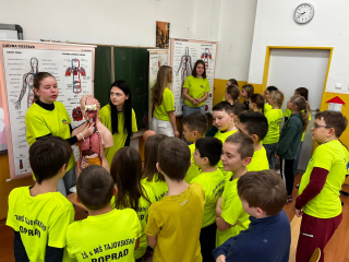 Vo štvrtok 27. februára naše študentky z 2.PS B navštívili základnú školu Tajovského v Poprade. Boli sme pozvaní zdieľať svoje vedomosti o dýchacej a obehovej sústave so štvrtákmi. Cieľom bolo priblížiť tieto témy zábavným a interaktívnym spôsobom. Naše dievčatá si pripravili prezentácie a rôzne aktivity, ako napríklad skladačku dýchacej sústavy, tajničku, model mechaniky dýchania a opakovací kvíz v aplikácii Kahoot. Veríme, že štvrtáci si integrované tematické vyučovanie užili a odniesli si mnoho nových poznatkov o ľudskom tele. Najväčší záujem vzbudili anatomické modely orgánov, ktoré si mohli štvrtáčikovia poobzerať.