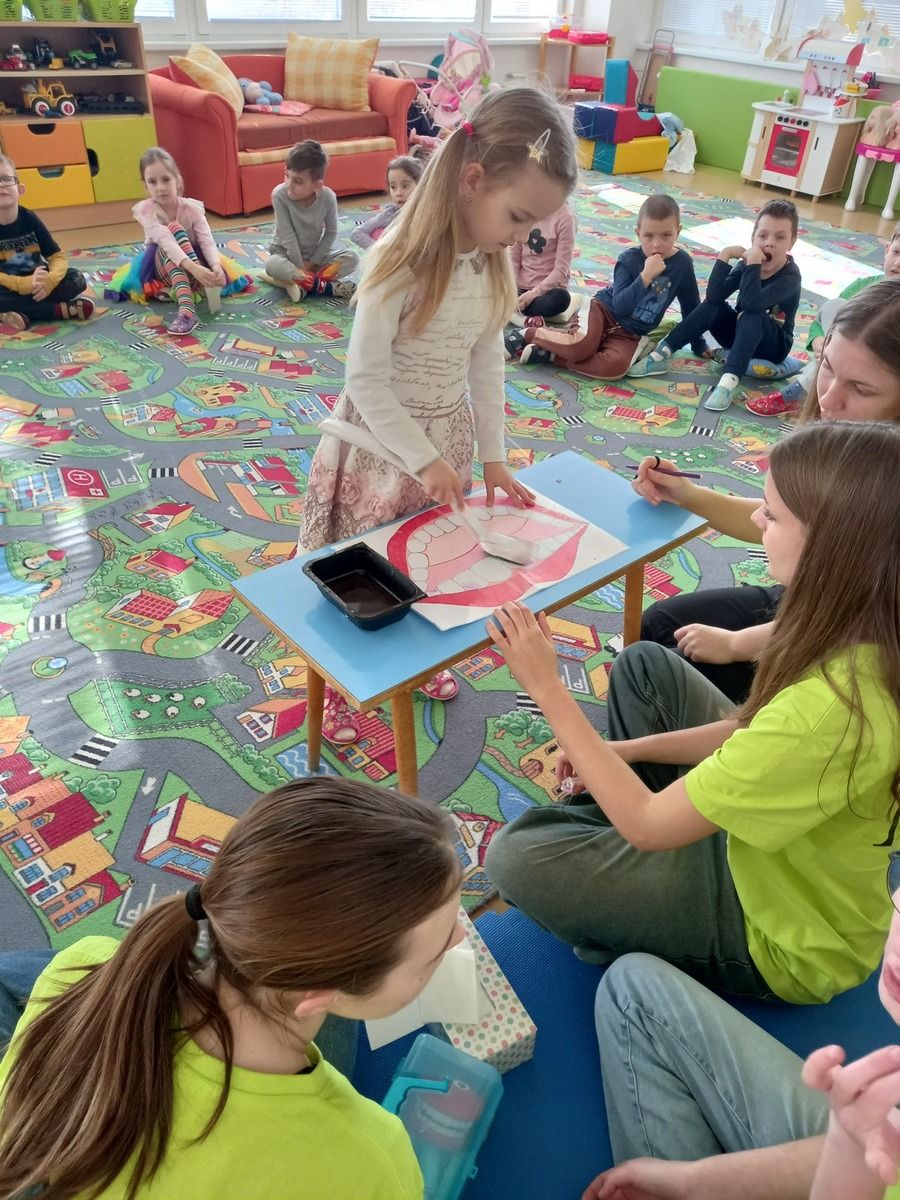 Žiaci 1.PSA sme si pre škôlkarov v Spišskej Novej Vsi pripravili poučné aktivity na tému starostlivosť o zuby. Deti, mladší škôlkari, predškoláci, sa učili správnu techniku umývania zubov a pomocou rôznych hier, rozprávok a aktivít sa dozvedeli, prečo je dôležité sa o svoje zuby starať a správne sa stravovať. My sme si zase vyskúšali prácu priamo s deťmi, vypočuli si mnohé úsmevné príhody od detí a taktiež sa mnohé naučili.