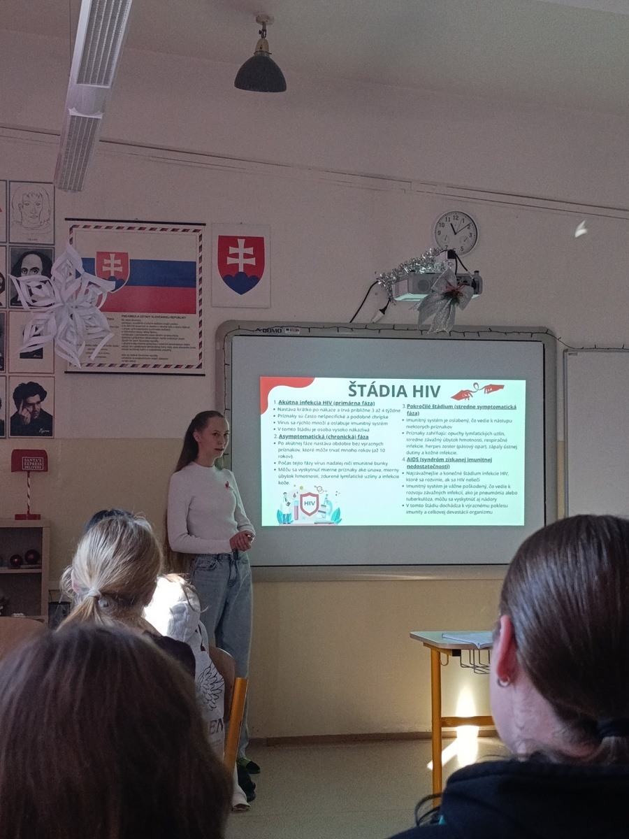 Pri príležitosti Svetového dňa boja proti AIDS (1. decembra) sa naša škola opäť zapojila do celoslovenskej kampane Červené stužky. Cieľom tejto iniciatívy je rozšíriť povedomie a vzdelávať o prevencii HIV/AIDS.