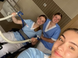 Pozdravujú vás dievčatá z 3.A a 3.B, skupiny La Esperanza - Henrieta, Kerstin, Viktória, Marianna, Tatiana a pani učiteľka Katarína Zahradníková a skupina El Zappillo- Simone, Tímea, Michaela, Marta, Alexandra a pani učiteľka Jana Kokoruďová. Od prvého dňa nás milý personál v centrách sociálnych služieb prijal s úsmevom na tvári. Komunikáciu zvládame veľmi dobre, pomáhame si gestikuláciou, posunkami, prekladačom, lebo angličtinu ovláda menšia časť španielov. Niekedy stačí, ak sa na nich usmejeme, pohladíme či ich objímeme. To všetko nás napĺňa energiou a každý deň sa tešíme čo nás ten ďalší čaká. Za tých pár dní čo tu sme, sme nabrali kopec nových odborných i pracovných skúseností, ale aj spomienok za čo ďakujeme projektu Erasmus+ pod vedením p.uč. Kataríny Zahradníkovej.